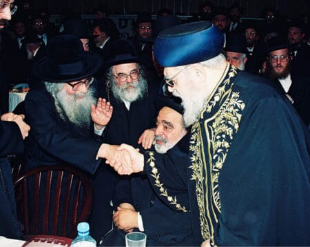 בהנהגת עולם התורה. עם מרנן הגרא"מ שך ו'הנתיבות שלום' מסלונים זצוק"ל באסיפת החינוך העצמאי