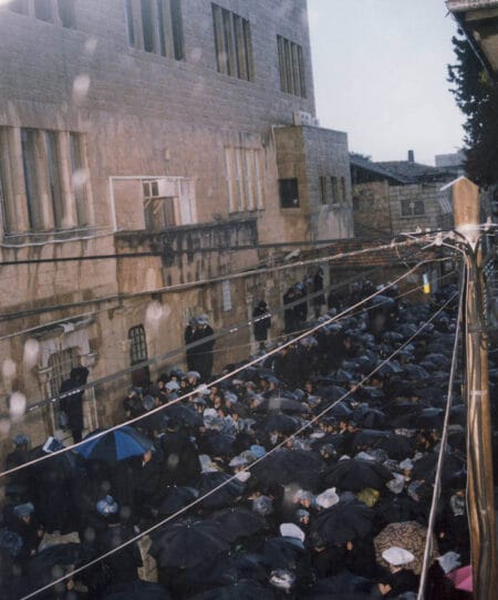 רק עשור שנים קודם לכן היה ה'אמרי אמת' מגור מנהיגם הבלתי מעורער של רבבות חסידים בפולין החסידית היוקדת. והנה כעת הוא מובא למנוחות בשעת אחר חצות של מוצאי החג, תחת אש, בירושלים עיר הקודש, בלוויה חפוזה ומהירה שבה השתתפו מאות בודדות בלבד מחסידיו ששרדו את התופת.