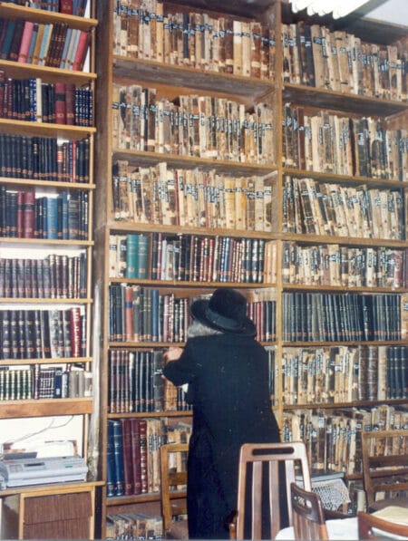 נפשו קשורה בתורה. שקוע בלימוד התורה בספרייתו