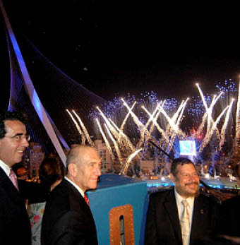גשר לכל לב. בחנוכת גשר המיתרים עם ראש הממשלה דאז אהוד אולמרט שאת מקומו מילא בראשות העיר, ושר התחבורה שאול מופז