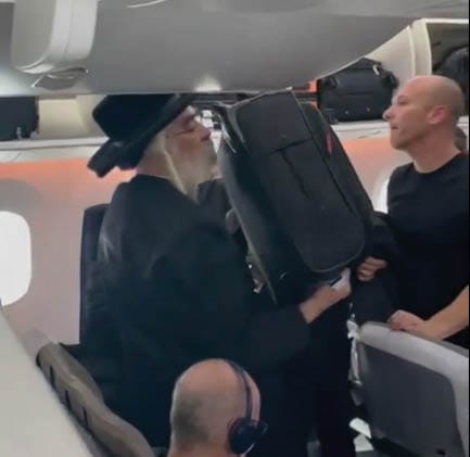 כאחד האדם. מוריד את המזוודה מתא המטען במטוס