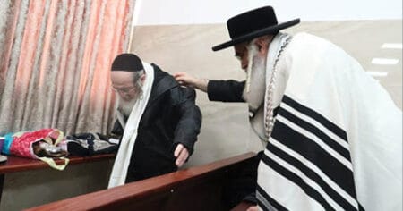 לעיני כל הקהל. בתפילת שחרית השבוע במירון