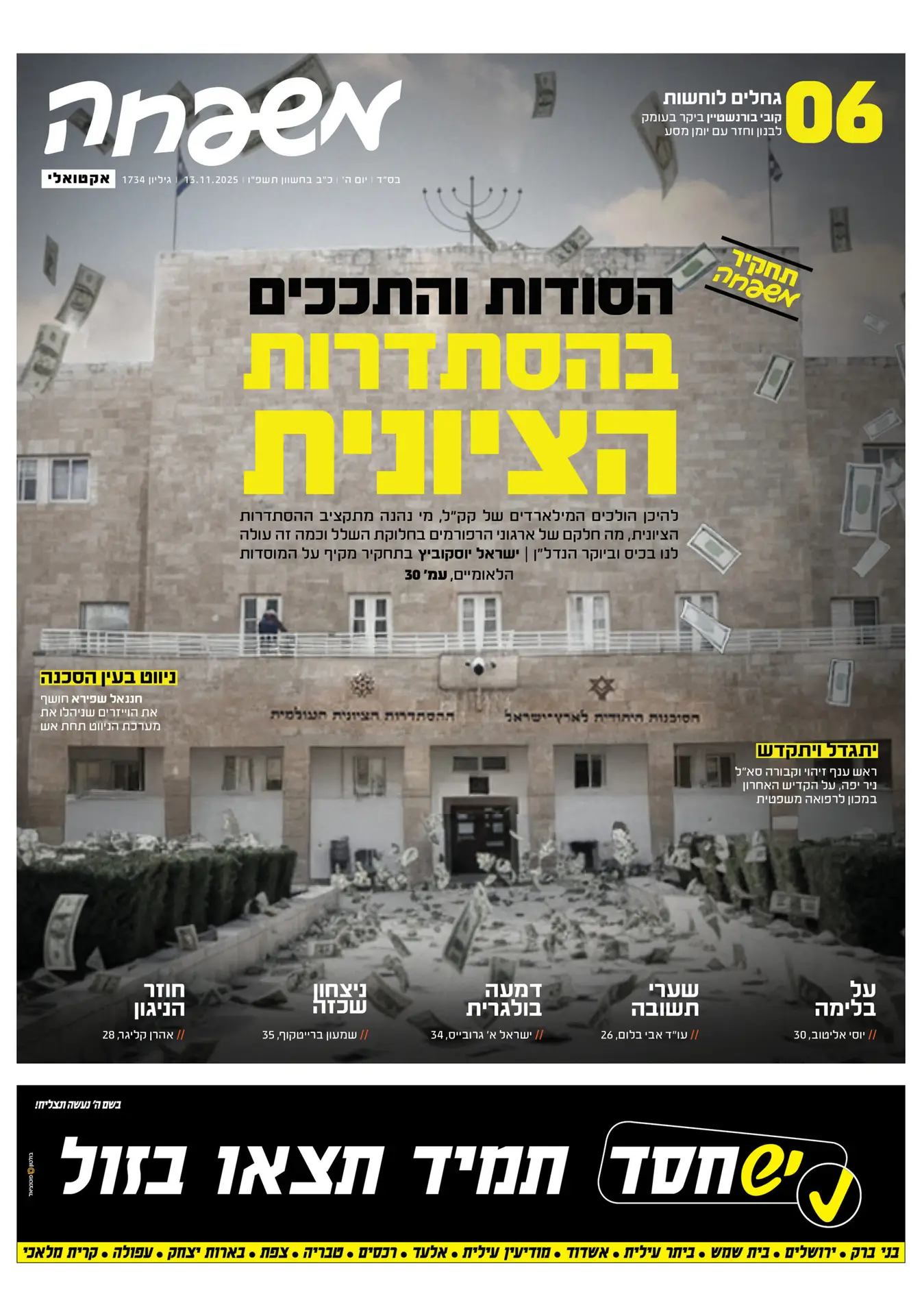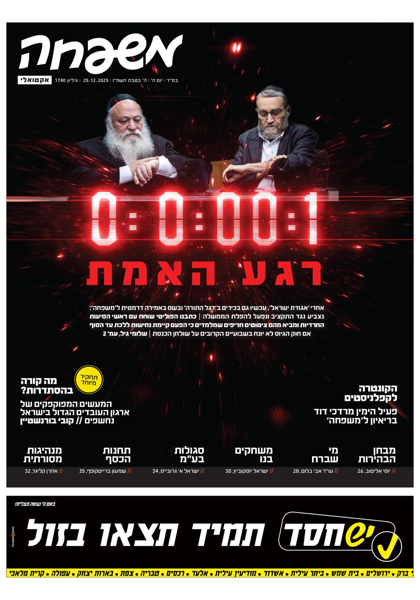 ל'חדשות משפחה' רקורד מרשים של עשייה וקידום נושאים משמעותיים בחברה החרדית. בין היתר דן העיתון בסוגיית האפליה בקבלה לסמינרים והציף את הכשלים בתחום, העלה לכותרות את בעיית הדיור במגזר ודרש תשובות מהגורמים המוסמכים וכן טיפל בבעיות צרכנות פנים-חרדיות. 'חדשות משפחה' מתהדר גם בשורת גילויים פוליטיים מסעירים וחשיפות בלעדיות שטלטלו את המערכת הפוליטית החרדית.